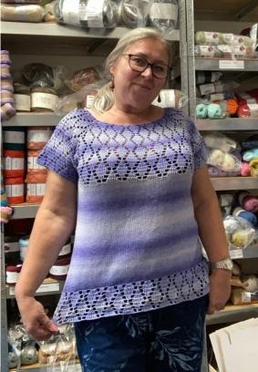 Kolik opakování vzorků ve výstřihu a ramenech vidíte přímo na fotkách. Háčkujeme až do podpaží, tam jsem vyjímečně nepřidávala, ale spojila přední a zadní stranu. Je už na vás, kolik přidáte háčkované části jak na těle, tak i na rukávcích.